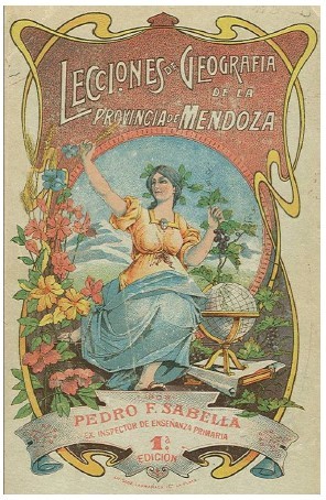 Para probar lo anteriormente expuesto y demostrar los orígenes de los límites departamentales, fue necesario que Luján de Cuyo pusiera a disposición pruebas cartográficas, documentación que el máximo tribunal consideró como información valiosa (Suprema corte de justicia de Mendoza, 2017). Entre ellos, podemos destacar, los textos cartográficos creados por el Ing. Sabella[8], libros escolares de su autoría como por ejemplo “Lecciones de Geografía de la Provincia de Mendoza”. Este libro probablemente haya sido el primer texto de Geografía de Mendoza (Figura 2) concebido esencialmente para la enseñanza en el sistema educativo que funcionaba en la provincia. Fue editado en el año 1907, por la casa Lit See Larrañaga y Cñia., de la ciudad de La Plata, bajo un contexto de rápida expansión del sistema educativo provincial, lo cual aseguraba una demanda efectiva a la nueva obra por parte de docentes y alumnos. El libro sumaba algo más de ciento cuarenta páginas, incluyendo fotos e ilustraciones en blanco y negro (Rojas et. al., 2014).